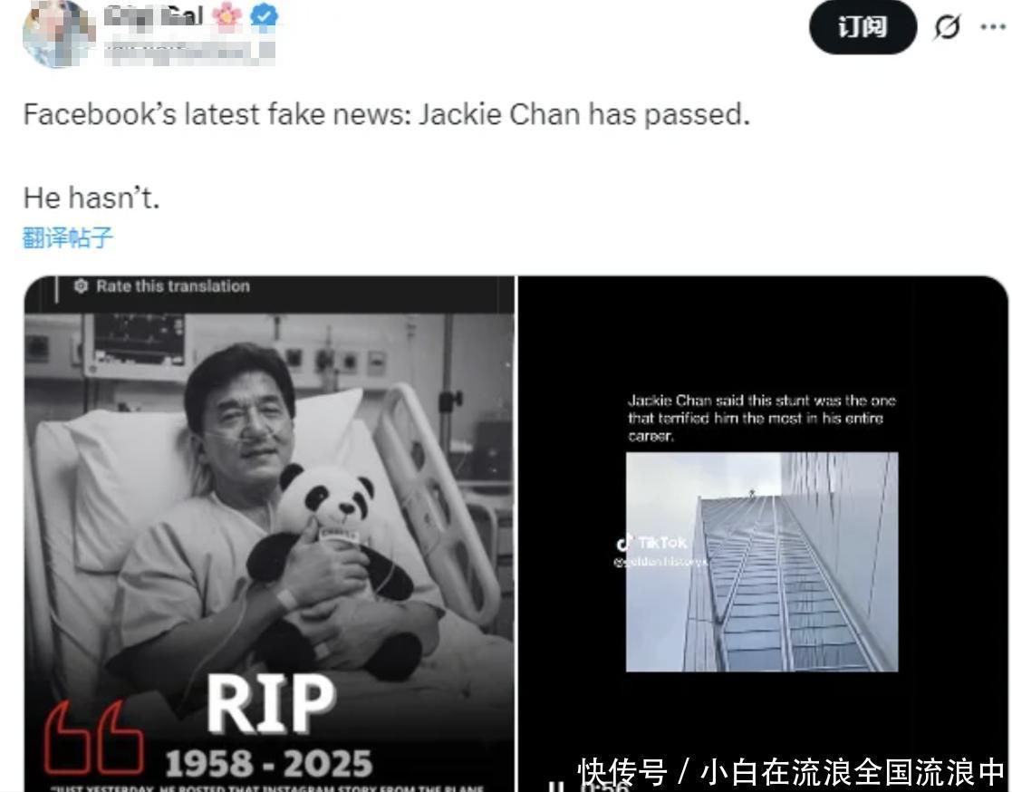 最近,有网友发现有人在社交平台发布了一篇成龙去世的贴文,并迅速在外网传播。